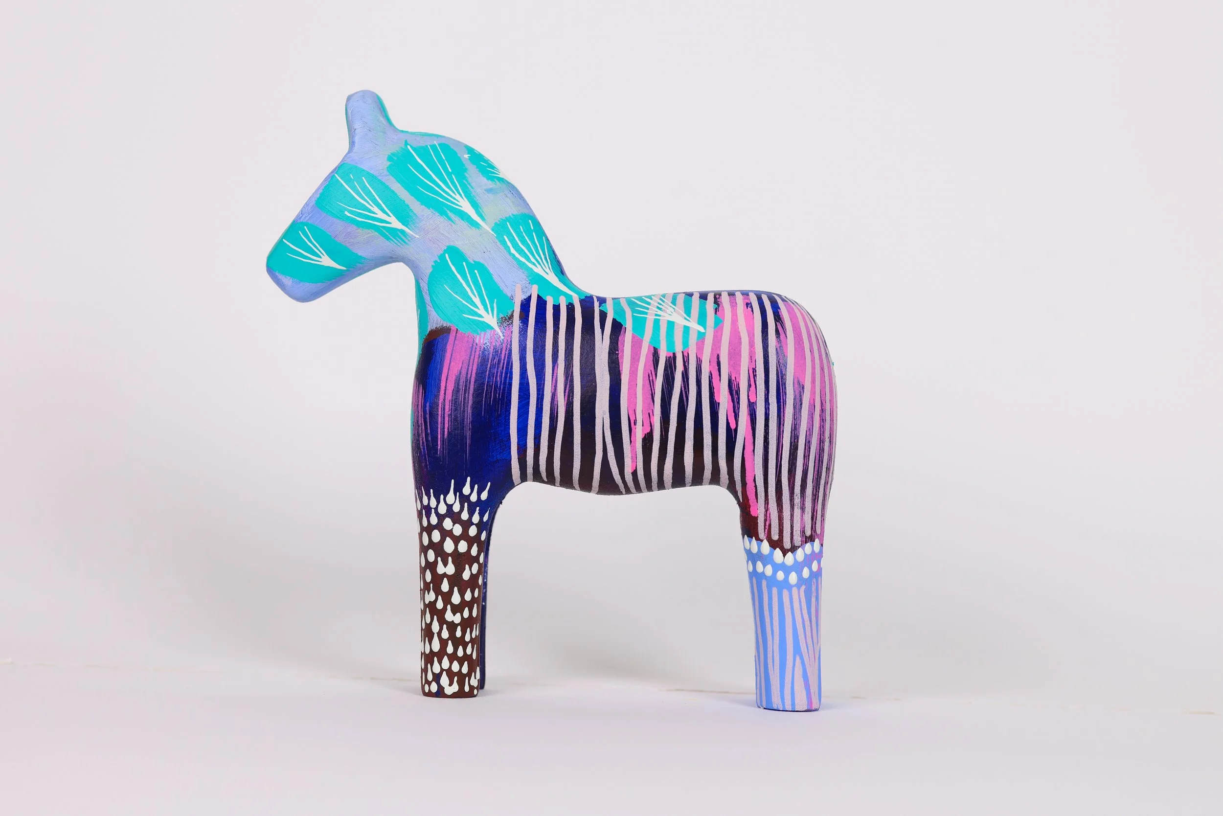 Inspired by the Artists Scandinavian heritage, this yearly tradition of painting and gifting Dala horses is one that is close to Abby’s heart. Each unique batch of horses have their own unique details and personality, much like each of us.